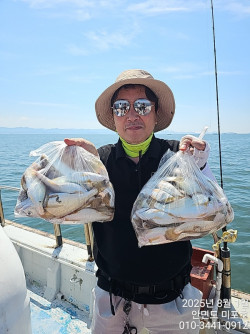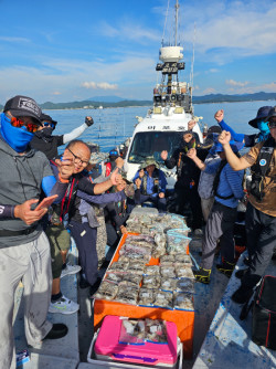 10월1일 미포호 오후배 5시간 조황입니다.첫 포인트에서 꾸준한 조황이 나와주면서 포인트 이동없이 잡아서 마릿수 조황으로 이어졌네요.1인 100수 에서 장원 180수를 잡고 마무리 하였습니다. 오신분들 고생많으셨습니다.