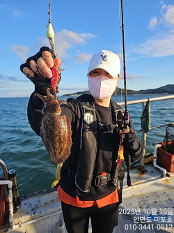 10월15일 미포호 종일배 조황입니다.오전에 다소 강한 동풍이 불어 바람이 덜 타는 포인트에서 갑오징어와 싸이즈 좋은 쭈꾸미 잡으며 초날물을 기다리다 물때에 맞춰 수심이 25m 전후 인 포인트에 가서 재미나게 잡고 마무리 하였습니다. 외국인분들 4분은 초급자라서 많이 떨구었지만 쭈ㆍ갑 100수 이상 잡고 돌아가셨고 중급자분들도 140수 장원 170수 잡고 철수 하였습니다.오늘은 레인보우 새우에기와 닭새우 에기에 좋은 반응이 있었네요.오늘 오신분들 점심 늦게 드려서 죄송합니다.고생 많으셨습니다.감사합니다.